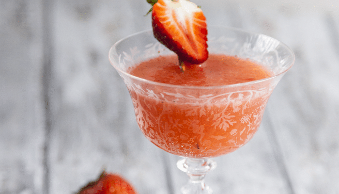 1. Lägg jordgubbsmixen i ett champagneglas och fyll på med mousserande vin.