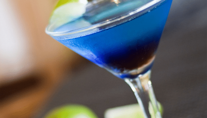 2. Häll upp gin, Triple sec och blå Curaçao.
