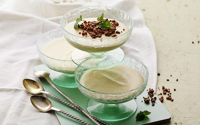 Avsluta gärna måltiden med en fräsch dessert med syrlig citronbas och krispig topping – med smak av kola och choklad.