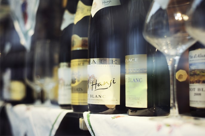 Alsace har en särställning i vinvärlden. Det är ett område som stundtals tillhört Tyskland, stundtals Frankrike. Och när det ligger, som det gör idag, under fransmännens beskydd, säger de, fransmännen alltså, att när Alsace tillhört tyskarna, då gjordes det vin med mycket alkohol för att blanda ut med det tyska, klena vinet. Idag är det annorlunda.