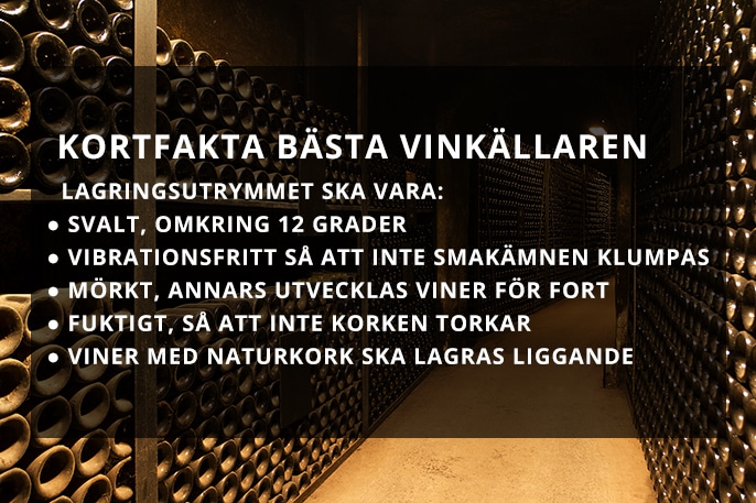 Att ha rätt utrymme för lagring av vin är i själva verket inte så komplicerat som man kanske kan tro. Det handlar om ett utrymme som är mörkt, svalt, gärna fuktigt, omkring 70 procents luftfuktighet, och vibrationsfritt.