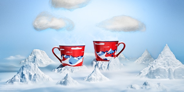 Till årets lansering presenteras också en specialdesignad glöggmugg, framtagen tillsammans med porslinsklassikern Rörstrand. Muggen, som säljs i 2-pack, pryds av motiv inspirerade av Alpernas landskap och blir både en värmande detalj och en stilfull gå-bort-present.