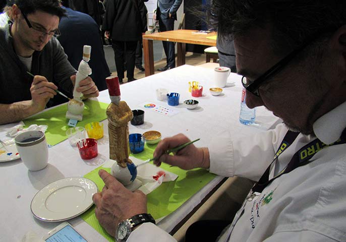 Ute i mässhallarna målade man sina egna Bocuse d´Or-statyetter.