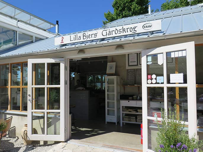 Det är en varm högsommardag när vi svänger in på vägen mot Västerhejde och Lilla Bjers. Pulsen efter lunchen har lagt sig och det råder ett skönt lugn över gården. Det sitter några gäster ute i trädgården och äter soppa, sallad, en matig smörgås eller bara dricker kaffe. Några botaniserar bland prunkande växthus där tomatplantorna är som vackra prydnader och miljön överlag känns lycklig.