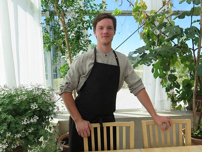 – Trots att det är stor skillnad på närheten till grossisterna i Stockholm så är det enormt häftigt att ha helhetsupplevelsen här. Att se ut över åkrarna och veta att allt grönt vi serverar kommer direkt från gårdens egna ekologiska odlingar. Det känns på riktigt.
