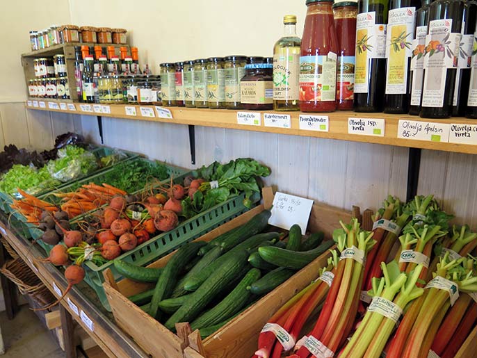 Det man inte producerar själv, som mejeriprodukter och nöt- och lammkött, tar man först och främst från gotländska producenter. Även det ekologiskt.