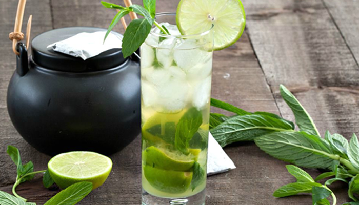 Blanda grönt te, sockerlag, limejuice och myntablad i ett highballglas och rör om. Pressa försiktigt myntabladen för att få fram oljorna. Fyll på med is och häll sedan upp vinet. Rör om och dekorera drinken med gurkskivor. Servera och njut!