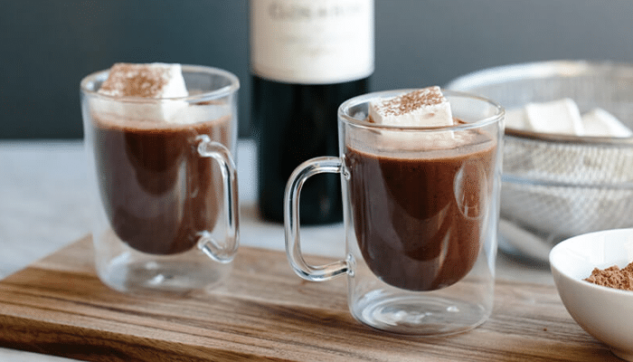 1. Värm mjölken och vispa ner kakao och socker. När blandningen är varm, häll i lite vin. Rör om och njut.