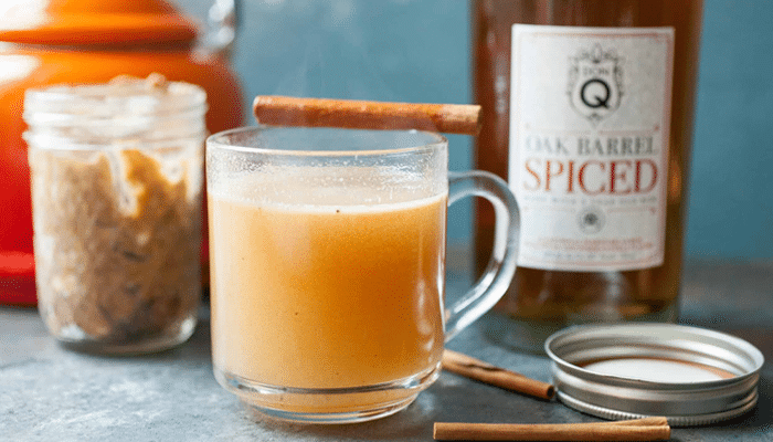 1. Koka upp vattnet. Mixa honung, brun farin och smör med en mixerstav. Tillsätt kryddorna. Rör om ordentligt och tillsätt rom. Häll på kokande vatten, rör om och servera.