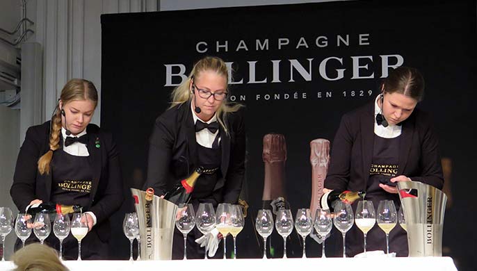 Vi följde med spänning de olika momenten på scenen, som handlade om att välja rätt glas till vinet och motivera valet, prova tre olika drycker och under sex minuter och identifiera sort och ursprung samt under en quiz koppla samman tio olika vingårdar med rätt ägare. Det sista tävlingsmomentet bestod av en flaska champagne och varsina åtta Elisabeth-glas, där det gällde att fördela drycken så jämlikt som möjligt i glasen.