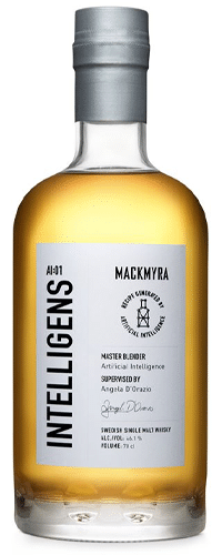 Mackmyras nya whisky Intelligens har gyllene gul färg med smak av vanilj, ektoner, citrus och päron. En fantasifull och spännande smakkombination. Men det som sticker ut och är världsunikt är hur whiskyn skapats, nämligen genom artificiell intelligens, AI. Mackmyra har tagit hjälp av Microsoft tillsammans med den finska teknikkonsulten och AI-specialisten Fourkind. Mackmyra har försett Fourkind med sina 75 olika whiskyrecept som genom åren byggts upp med hjälp av Mackmyras ambassadörer och kompletterat med kundomdömen, recensioner, ratings, medaljer, utvärderingar och betyg.