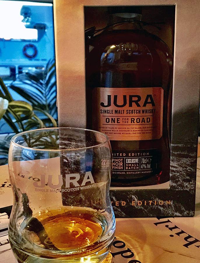 Men nu är det One for the Road som har lanserats. Ambassadören Willie Cochrane säger det inte själv, men han har vunnit över tio utmärkelser under sin karriär och har själv tagit emot flera tusen besökare från stora delar av världen, som alla är intresserade av destilleriet på Jura där kvalitet och engagemang är ledorden bakom hantverket och produktionen av whiskyfaten. Under hösten inledde han en omfattande Europaturné för att tacka för sin långa tid i företaget. Stockholm och Sverige blev Willie Cochrane´s sista stopp under den turnén.