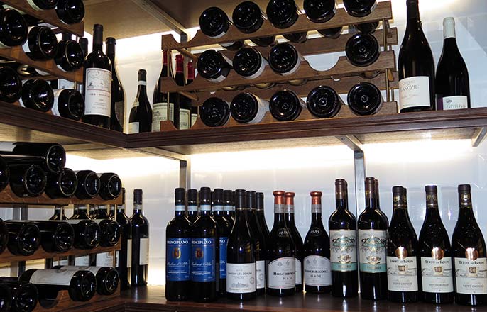Vi passerar Tomas stolthet, ett välfyllt köttskåp, på vägen ner till källarvåningen och en stor samling fina viner. Allt kött från Norr- och Västerbotten hängs och möras här i skåpet, som därefter tillagas på kökets hjärta – kolgrillen.