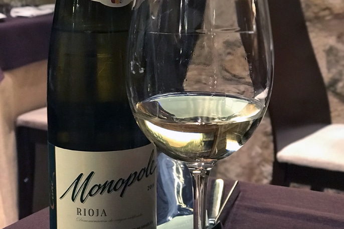 Kul ställe i fantastiska Laguardia, en medeltida by på en kulle med en ringmur kring. Här tar man sig först ett glas vin i källaren och äter sedan gott i den lite lätt överdådiga restaurangen med vita dukar och kandelabrar. Gott är det verkligen. Och stora portioner. Inhyser också ett mycket fint hotell.