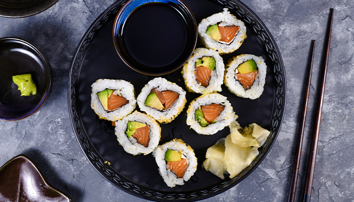 Till detta friska och fruktiga mousserande Riesling passar det bra med lite feta och salta toner. Därför blir dessa makirullar med kallrökt lax ett utmärkt val!