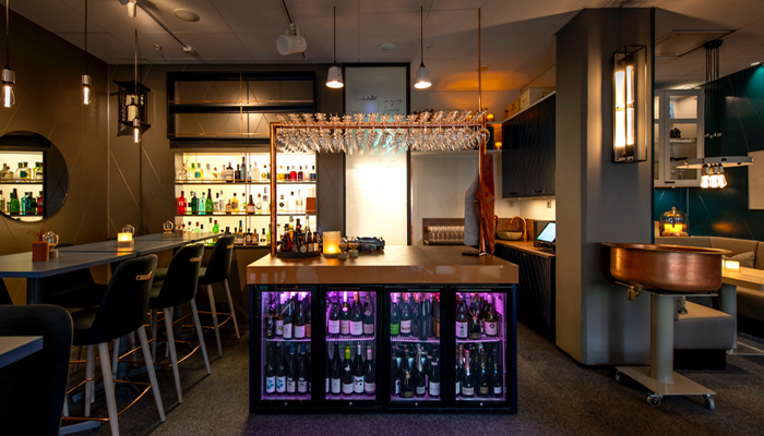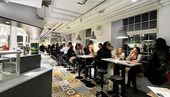 Vackert belägen vid vattnet i industrilandskapet ligger denna charmiga vinbar, med italiensk touch. Om du inte vill beställa i baren kan du själv fylla på vin efter eget tycke och smak från restaurangens enomatics-maskiner.