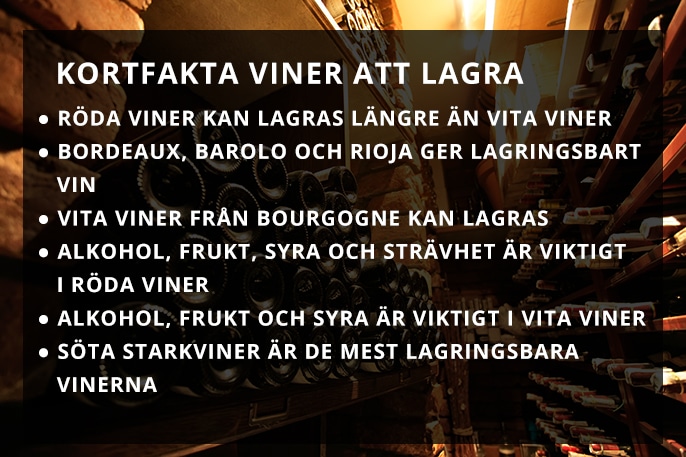 Långt ifrån alla viner går att lagra. I själva verket är det få viner som kan eller till och med bör lagras. Det har att göra med att vinproducenter ofta väljer att producera ett vin för omedelbar konsumtion.