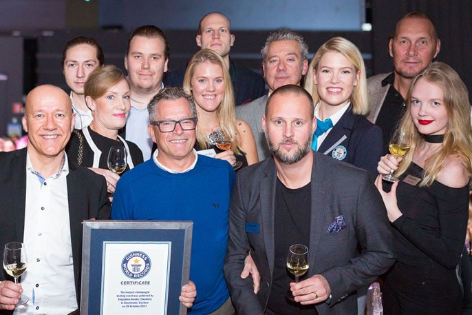Över 400 flaskor champagne korkades upp, 4 000 glas fylldes av 30 sommelierer, 20 kontrollanter var dessutom på plats under ledning av Guinness World Records representant. Endast tre glas gick sönder. En av många saker som imponerande under kvällen.