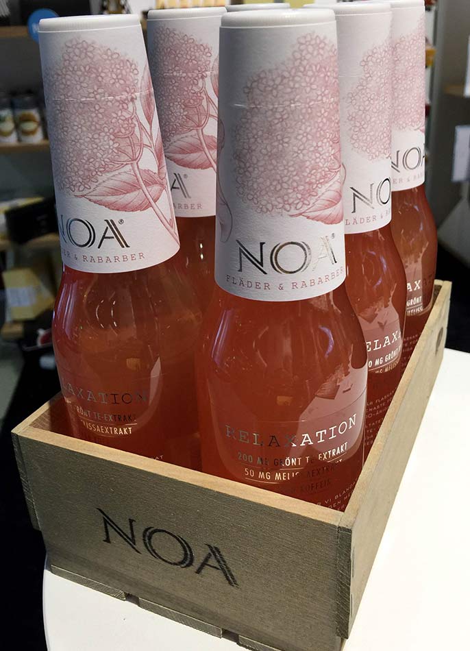 Vi fick tillfälle att stanna upp och pausa en stund med drycken Noa Relax & Focus, som med sina naturliga örter ska skapa lugn och fokus. Den här har smak av fläder och rabarber.
