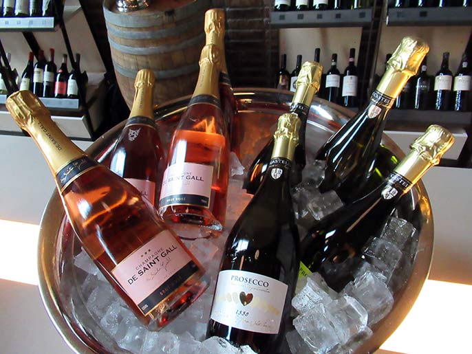 Champagne De Saint Gall Brut Rosé och Cielo Prosecco 1530 on the rocks.