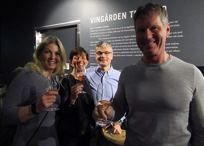 Det börjar bli en trevlig vana, det här att möta våra kunder och prenumeranter in real life – och vi gör det med fördel på världens första hotell med ett urbant vineri i samma byggnad, The Winery Hotel. Köerna växte långa till detta vineri, där guiden David Ejnar på sitt trivsamma sätt gav våra gäster en inblick i druvans väg från skörd till flaska. Stort intresse väckte också de goda dryckerna – förstås – som våra duktiga sommelierer med stor kunnighet kunde bjuda på.