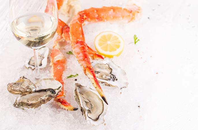 I vinstilarna hittar vi en lättsam albariño som med sina friska smaker och höga syra är närmast optimal till ostron eller råa skaldjur. En lite kraftigare sauvignon blanc som helst är elegant i doften fungerar ypperligt till en mer tillagad komplex rätt. Och en skönt fatlagrad chardonnay med lite vaniljsötma är hur bra som helst till en smörstekt torskrygg med kokt potatis och smörstekta morötter. Ju lättare vin och högre syra, desto renare smaker på råvaran, följaktligen: ju bredare smakpalett, desto mer smak på fisk och tillbehör. Svårare än så behöver det aldrig vara.