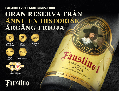 Faustino I Gran Reserva 2011 har en nyansrik doft med inbjudande inslag av fat, torkade mörka frukter, blå solmogna plommon, kryddor, vanilj, torkade örter samt en fläkt av kryddnejlika och piptobak. Smaken skänker tydlig kryddighet och karaktär från faten som samsas på bästa sätt med solmogna frukter och bär, nötter, torkade örter och en bra syra. Vinet har en bra balans och eftersmaken har en fin längd. Förstklassiga Rioja-viner som detta är mer eller mindre unika i vinvärlden eftersom de är drickmogna när de lanseras, men ändå kan lagras och utvecklas ytterligare under mycket lång tid.