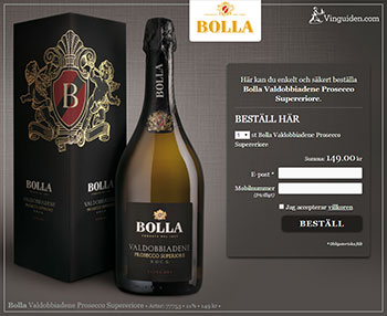 Det italienska vinhuset Bolla är känt för sin kvalitet, något som också återfinns i Bolla Valdobbiadene Prosecco Superiore. Det är en Prosecco där hantverket lyser igenom och där strikta urval kring druvorna har gjorts. I Valdobbiadene odlas druvan Glera i mindre skala och på en högre altitud, med lägre skördeuttag vilket ger en annan karaktär på druvan. Istället för tydliga pärontoner finns mer elegans och smaken är mer sofistikerad, även om stilen för Prosecco fortfarande finns kvar.