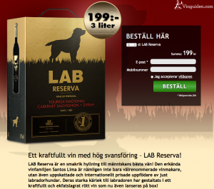 LAB är ett utmärkt vin, kraftigt, nästan tungt, passa till de flesta kötträtter. Även för dem som inte har två labbar hemma!