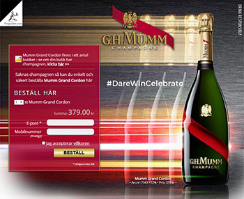 Mycket greppvänlig flaska för högerhänta,elegant utformning av flaskan, vilket helt harmonierade med innehållet. Löjrom, Torskrygg, Mumm(s)