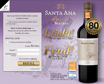 Santa Ana Reserve Malbec Fair for Life har en doft som karakteriseras av mineraler, plommon, svarta körsbär och svartpeppar. Märkningen Fair for Life används för att säkerställa rättvisa och positiva förhållanden mellan producenter och deras anställda och samtidigt garantera ett miljö- och socialt ansvar.