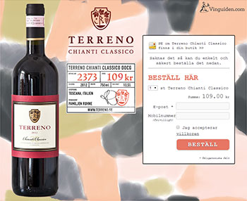 ”Stor utvecklad doft med körsbär, skogsbär, tobak, örter och ek i tonerna. Medelfyllig, fint fruktig smak med trevligt utvecklade aromer, riktigt bra längd, god, ganska mogen tanninstruktur, fin syra och bestämt slut. Gedigen chianti classico”. Ett fynd i sin prisklass.
