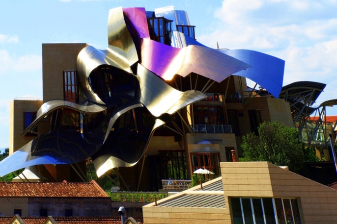 Frank Gehrys favoritmaterial, titan, blänker och ger bodegan ett närmast mytiskt sken. Sensationen var bara förnamnet. Att sedan förlägga ett av landets lyxigaste hotell, spa och restaurang inom väggarna var naturligtvis ett genidrag. Idag är Marqués de Riscal en av världens mest besökta vinegendomar.