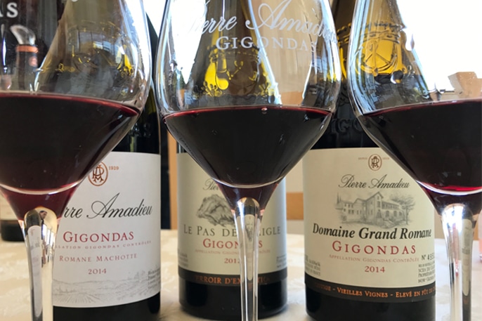 Om västra Rhône är platt är östra delen raka motsatsen, där vi hittar appellationen Gigondas på 1 200 hektar som ligger upp mot bergen, ännu lite längre från Medelhavet, vilket ger ett svalare klimat. Det är vackert, med fantastiska små bergsbyar, inte minst i Gigondas, och vi hittar vinodlingar som är branta, mycket branta. Området, som är ett av de mest kända i södra Rhône, producerar också fantastiska röda viner. Nu är vinet komplext, fylligt, smakintensivt och med minerala toner. Storslaget, helt enkelt. Gigondas producerar inga vita viner, men en liten del roséviner, omkring en procent av produktionen.